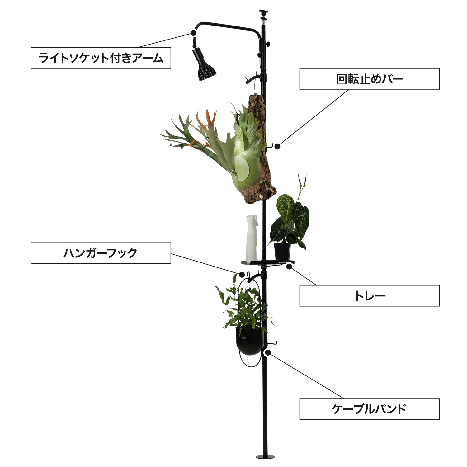 - 【部屋のどこでも好きな場所で育てられる】ツッパリ式だから、部屋の好きな場所を育成スペースに。「吊るす育成」が、もっと自由に楽しめます。