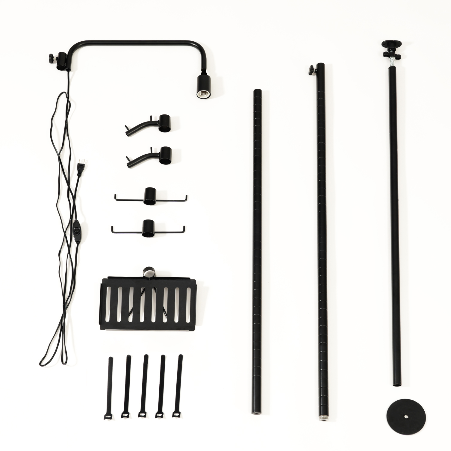 ライトソケット付きアーム×1、ハンガーフック×2、回転止めバー×2、トレー×1、ケーブルバンド×5、ポール本体
