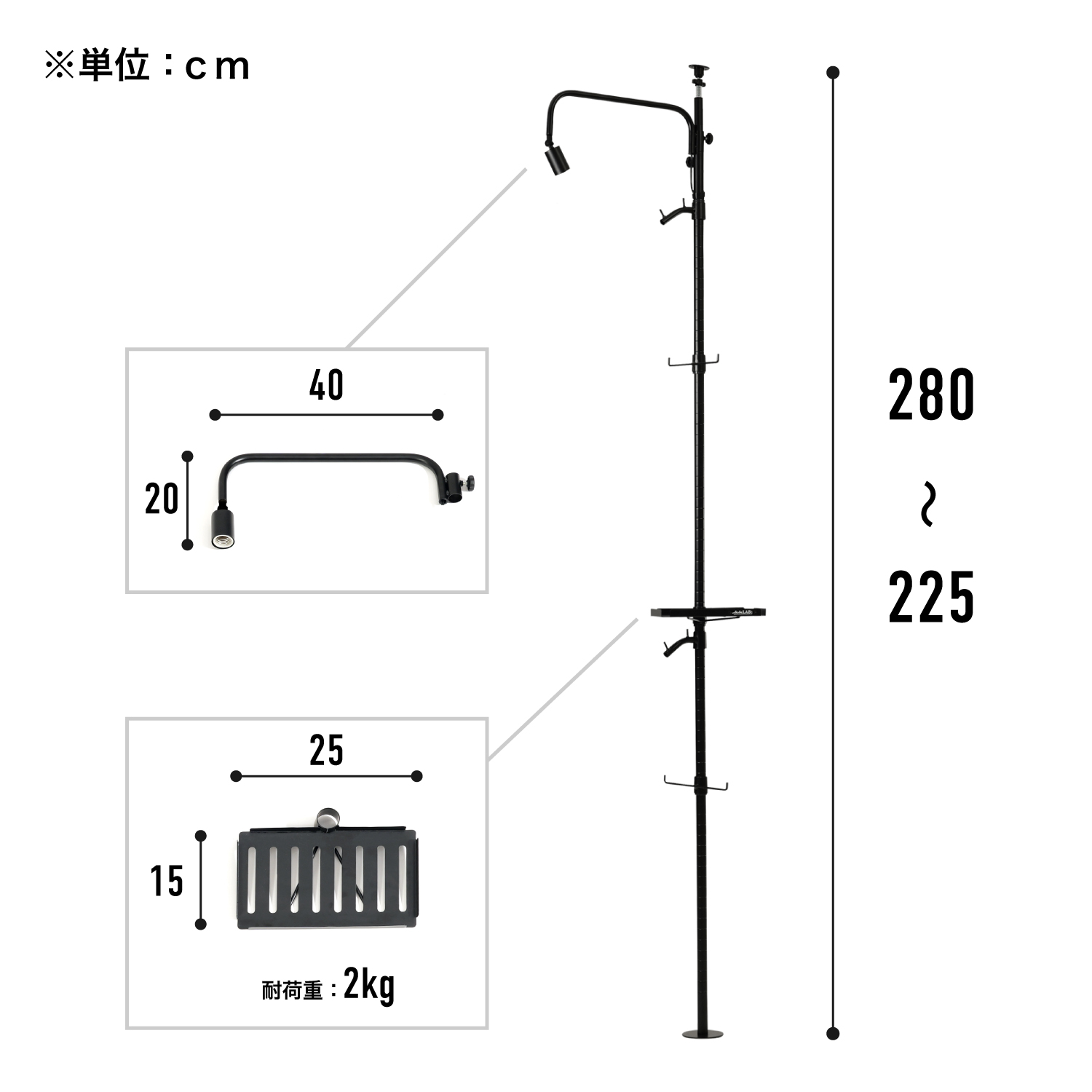 | 製品寸法 | 幅 25cm ✕ 奥行 47cm ✕高さ 225cm(225〜280cm) |