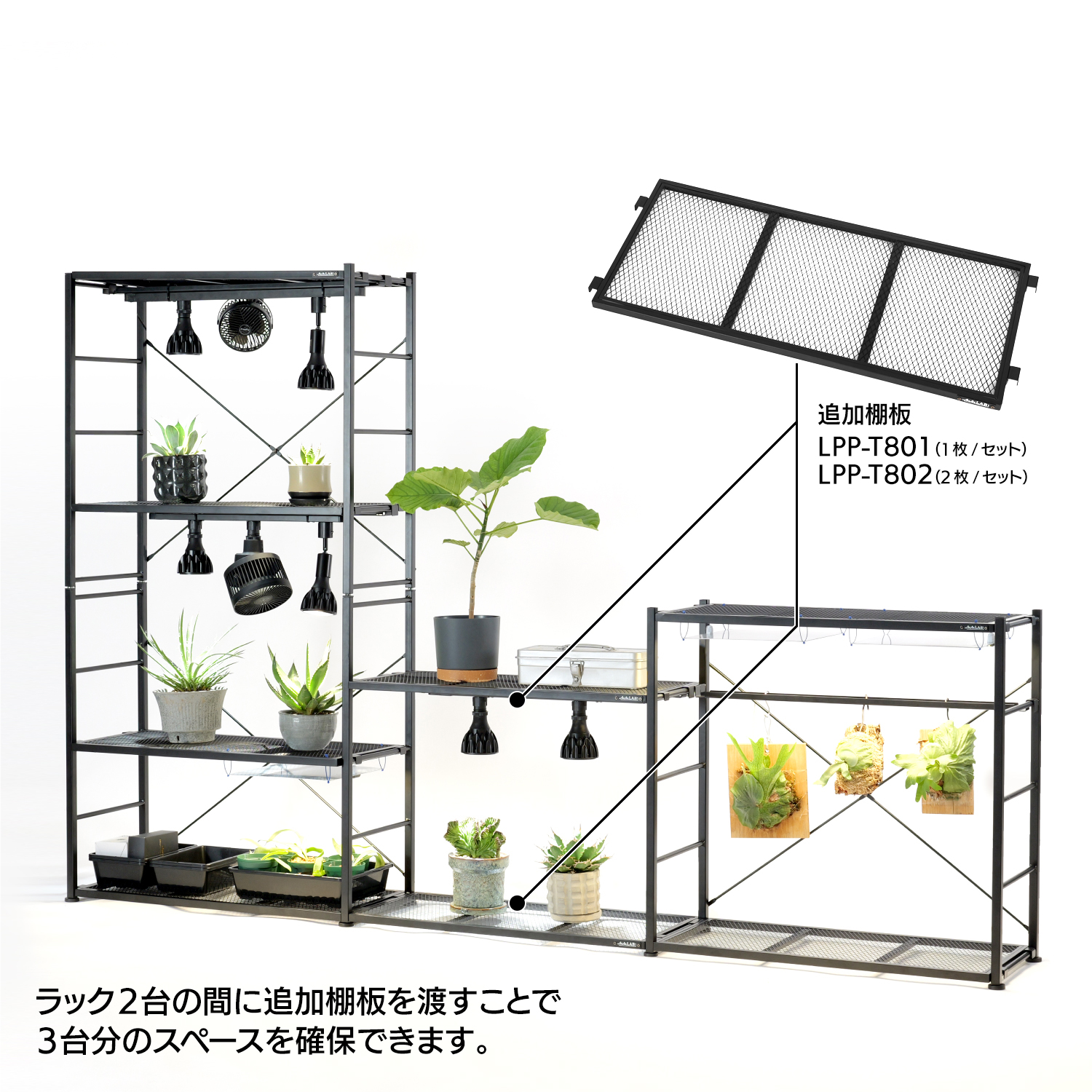 - 【植物の育成スペースを自由に拡張】「ビザールプランツラック」2台分で、約3台分の育成スペースを確保することができます。